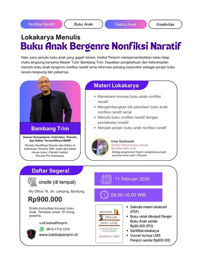 Data pendaftaran pelatihan Institut Penprin berhasil terkirim. Silakan melakukan pembayaran transfer via BCA Nomor Rekening 2821355526, a.n. Irma Susilowati. Kemudian lakukan konfirmasi pembayaran (mengirimkan bukti pembayaran) melalui tombol konfirmasi pembayaran di halaman pelatihan atau melalui whatsapp.
