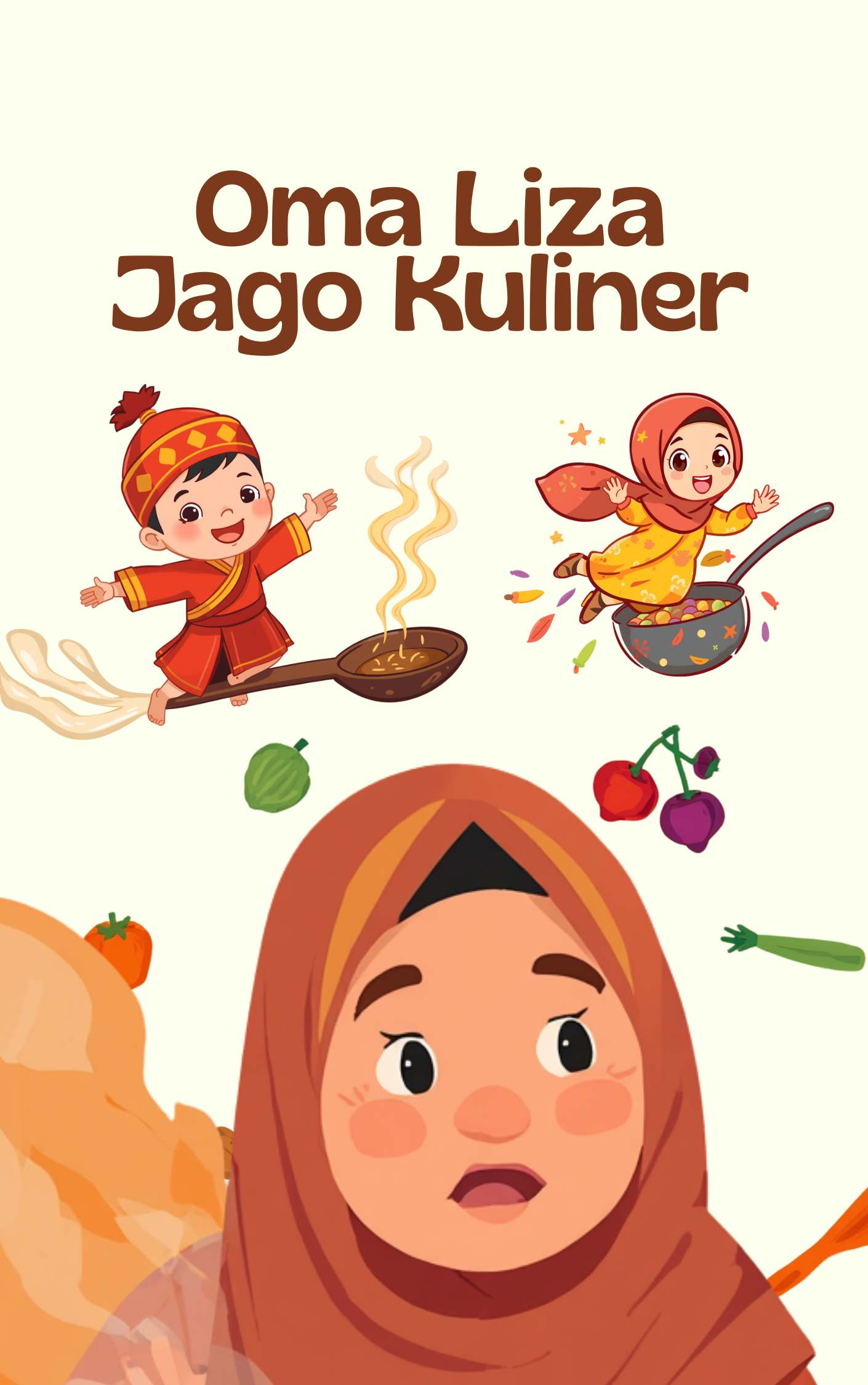 Kira-kira judulnya Oma Liza Jago Kuliner. Cukup disajikan dalam format buku 32 halaman yang mengisahkan siapa Oma Liza dan kisahnya sebagai jago kuliner. Mungkin ada sisipan konflik di dalam buku cerita anak yang sederhana. Buku jenis ini yang disebut nonfiksi naratif.